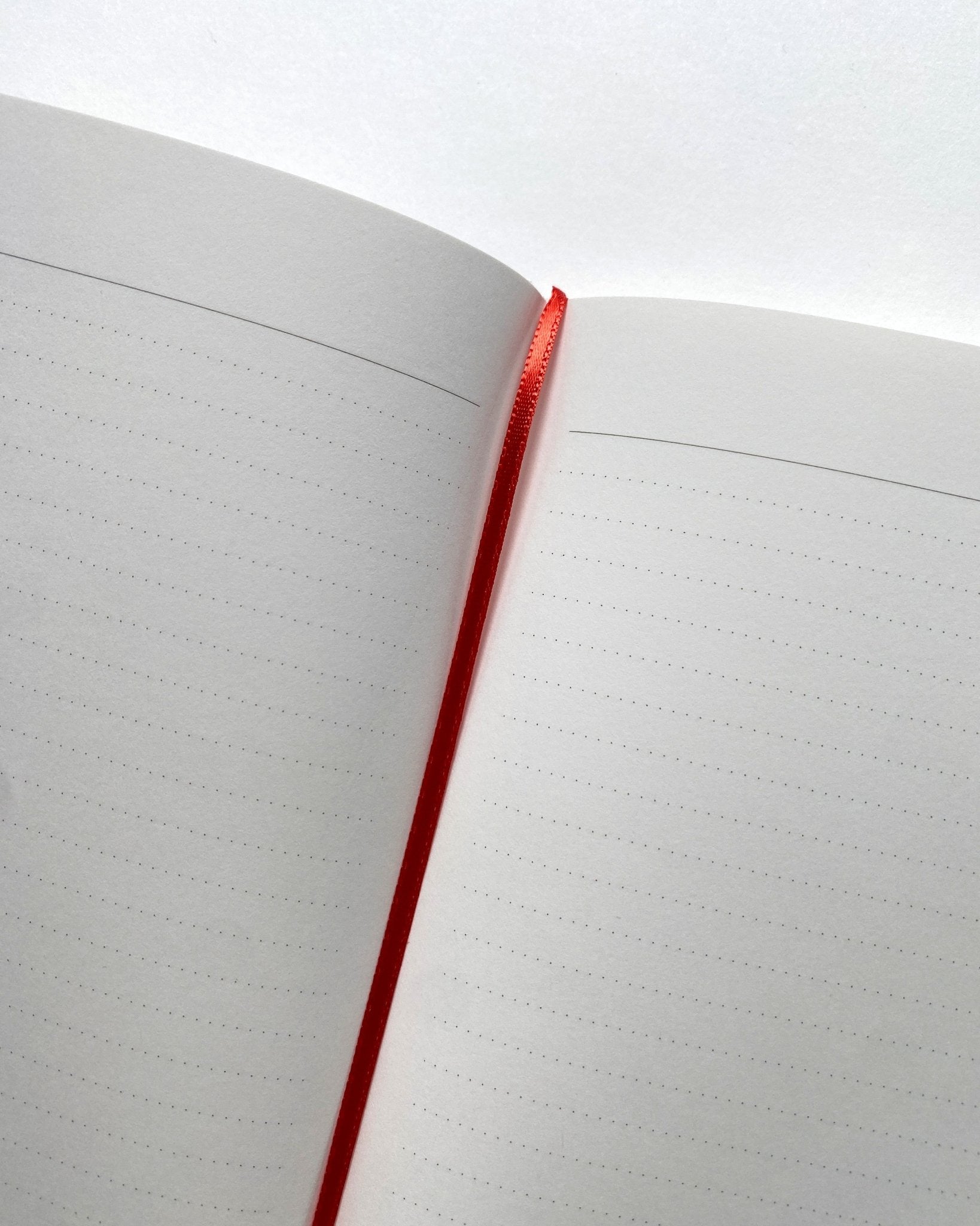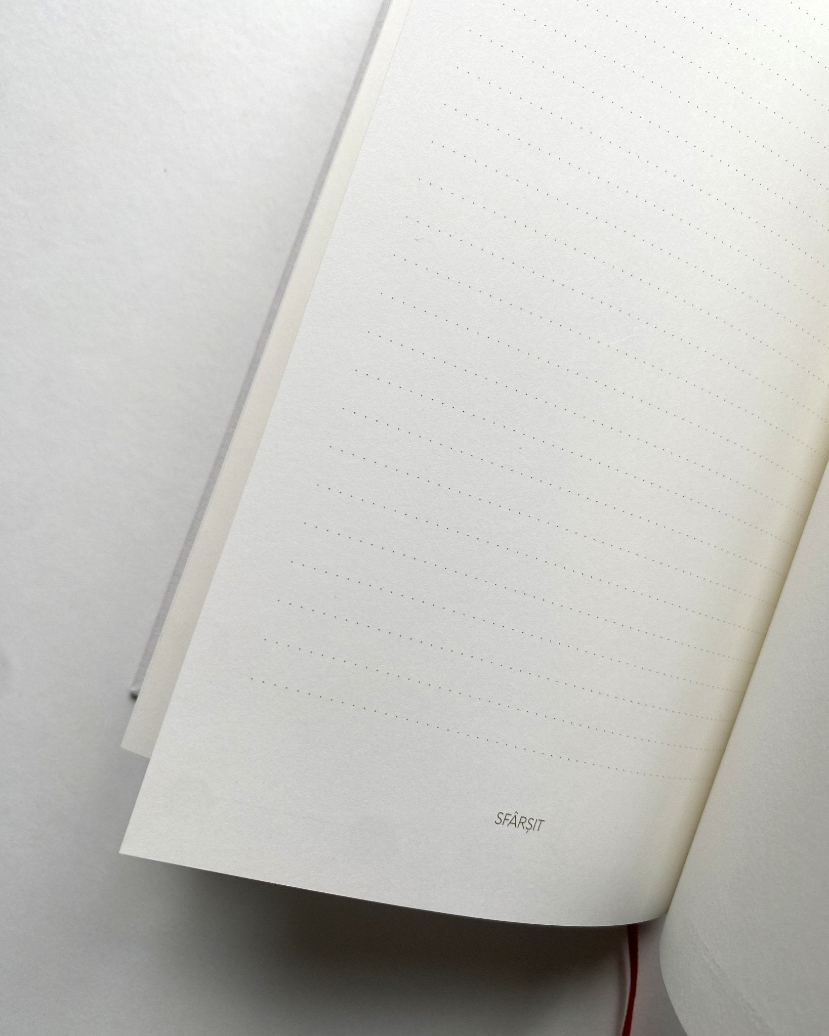 Epilog is a hardcover journal in an ideal size, delicate and pleasant to the touch. The rigid cover features a foil-embossed design, and the interior pages are creamy and smooth, with a dotted line grid.